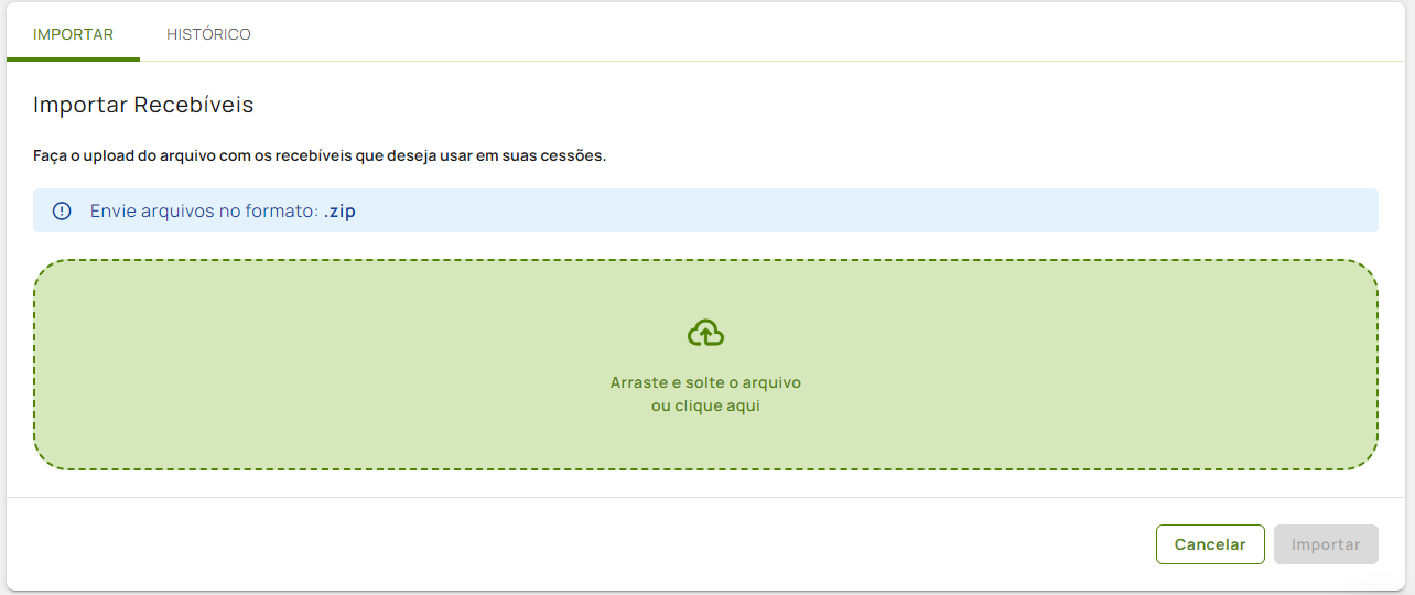 5. Agora você pode subir esta pasta na plataforma para alimentar seu Banco de Recebíveis.