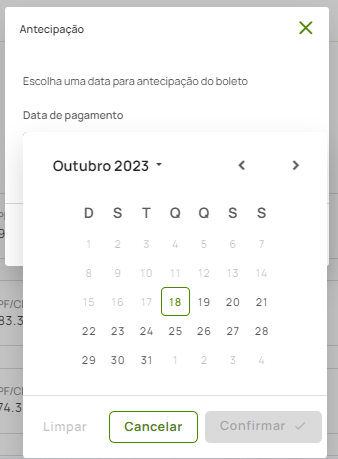 Escolha a data de pagamento e clique em "Confirmar".