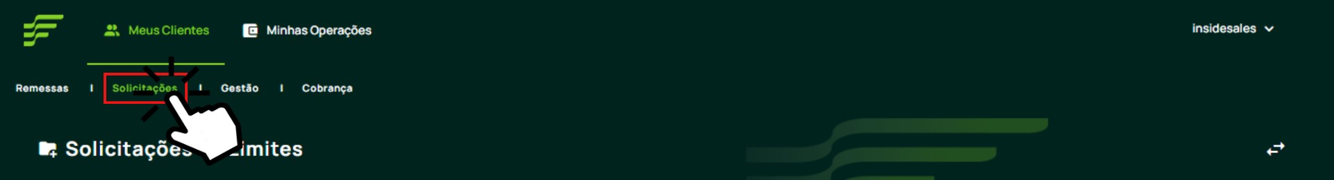- Após fazer seu login na plataforma, vá até a aba "Meus Clientes" > "Solicitações"
