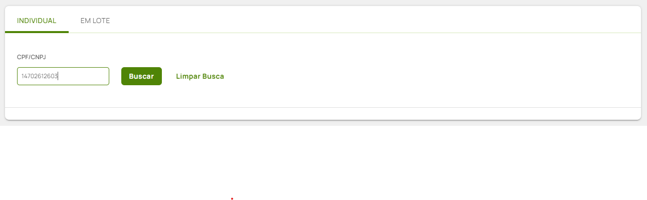 1. Digite o CPF ou CNPJ do cliente que deseja solicitar limite e siga para buscar. Preencha apenas com números, sem pontos e barras.