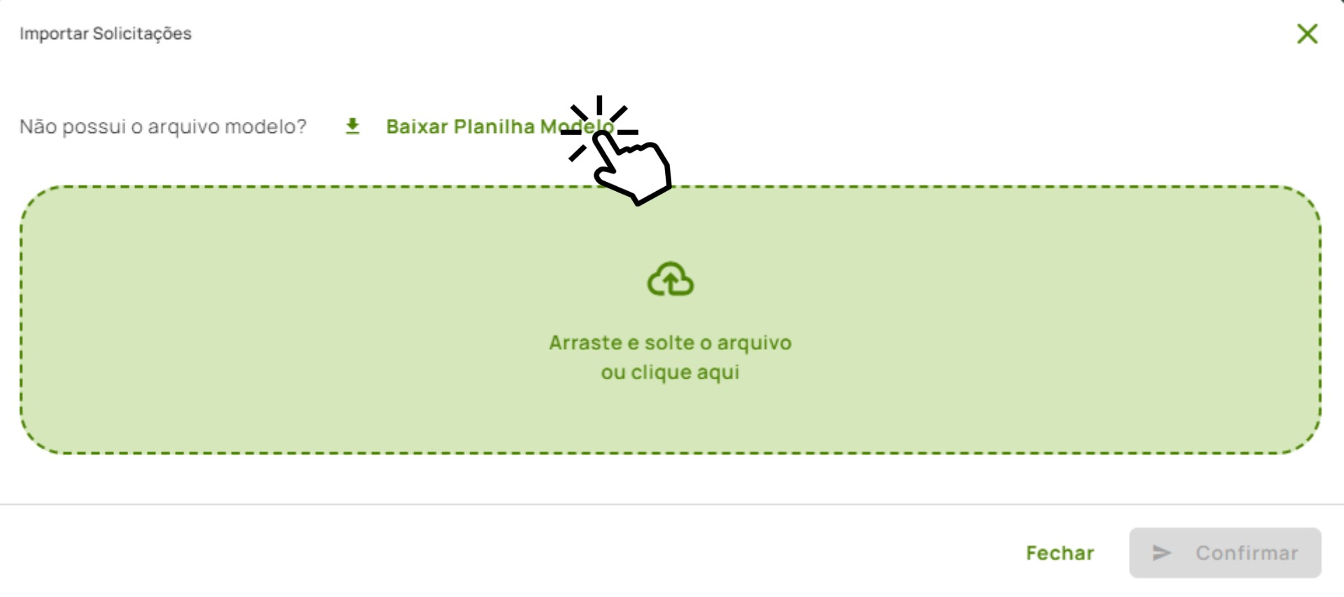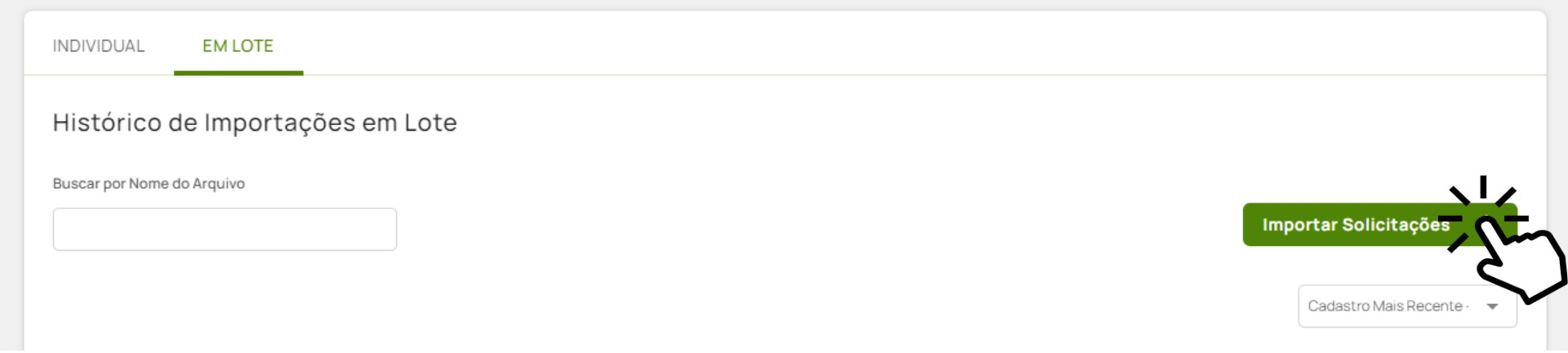 1. Para iniciar uma nova solicitação, clique em Importar Solicitações.